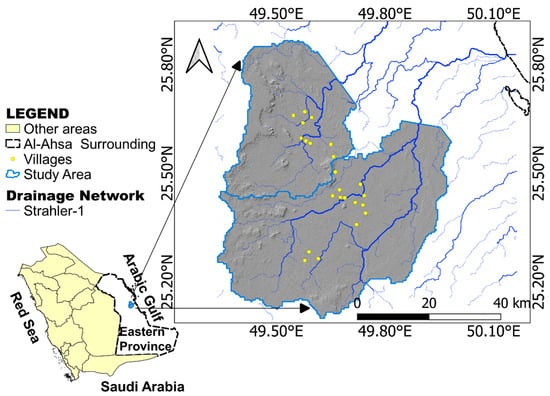 For reliability, the delineated drainage network was assessed using a sharp image obtained from the Google-Earth Pro platform, as described previously [], and a satisfactory result was obtained.