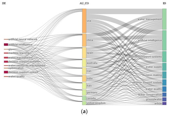 Bibliometrix of streamflow prediction subject based on (a) the Sankey diagram and (b) the keyword attributions of streamflow prediction.