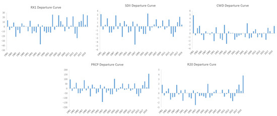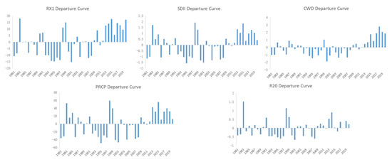 3.2. Temporal Variation Characteristics of the Extreme Precipitation Index