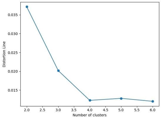 Elbow figure; the ‘Distortion’ is the sum of the differences between each point and the cluster centroid after clustering.