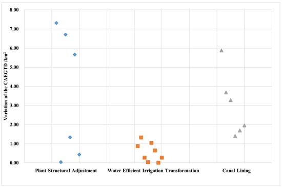 The CAEGTD caused by a single measure change in the water-saving scenario schemes.