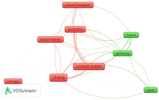 The intricate network analysis map for publishing countries in this bibliometric analysis is depicted in Figure 3. Each box in the figure represents the number of publications, while the arcs indicate the total link strength to other publishing countries. A substantial number of publications in this study originated from countries such as the United States, China, and Japan. China emerged as the leading publishing country with 75 publications, followed by the United States with 46, and a total of 19 each for Australia and South Korea. Regarding total link strength and illustrating collaborative efforts between countries, the United States exhibited the highest number of links, followed by China, with Germany ranking third in this aspect.