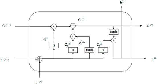 The key idea of the LSTM lies in the cell state (see Figure 3), a horizontal line running above the diagram resembling a conveyor belt. The cell state functions like a conveyor belt, running directly through the entire chain with only a few linear interactions. Keeping information unchanged as it flows on top is easily achievable. LSTM has the ability to remove or add information to the cell state through a carefully designed structure known as “gates”. Each gate comprises a sigmoid neural network layer and a pointwise multiplication-based nonlinear operation. The sigmoid layer output values lie between 0 and 1, where 0 means “do not allow any amount to pass”, and 1 means “allow any amount to pass”. LSTM incorporates three types of gates: the forget gate , the input gate , and the output gate .