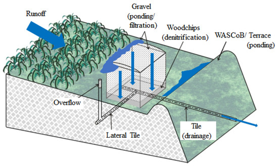 - Christianson, L.E.; Bhandari, A.; Helmers, M.J. A practice-oriented review of woodchip bioreactors for subsurface agricultural drainage. Appl. Eng. Agric. 2012, 28, 861–874. [Google Scholar] [CrossRef]