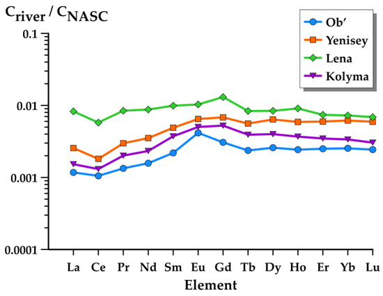 - Rachold, V. Major, Trace, and Rare Earth Element Geochemistry of Suspended Particulate Material of East Siberian Rivers Draining to the Arctic Ocean. In Land-Ocean Systems in the Siberian Arctic: Dynamics and History; Kassens, H., Bauch, H.A., Dmitrenko, I.A., Eicken, H., Hubberten, H.-W., Melles, M., Thiede, J., Timokhov, L.A., Eds.; Springer: Berlin/Heidelberg, Germany, 1999; pp. 199–222. [Google Scholar]