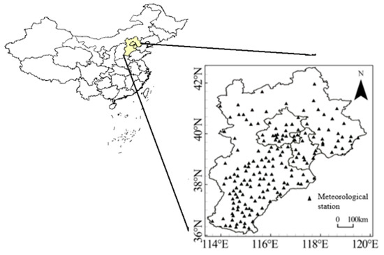 - Xu, C.; Lu, C.; Wang, J. Characteristics of climate change in Beijing-Tianjin-Hebei region in recent 60 years. Water Resour. Hydropower Eng. 2021, 52, 12–20. [Google Scholar]