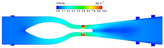 Figure 8 shows the cross-sectional flow velocity distribution of the pump device. From the figure, it can be seen that the flow velocity changes more uniformly at the inlet passage position, and as the cross-sectional area of the inlet passage decreases, the water flow velocity gradually increases. When the water passes through the impeller position, it starts to accelerate due to the rotation of the impeller. In the guide vane section, due to the rectification effect of the guide vanes, the water flow velocity begins to decrease. At the outlet passage position, the water flow velocity continues to decrease and the velocity distribution gradually stabilizes.
