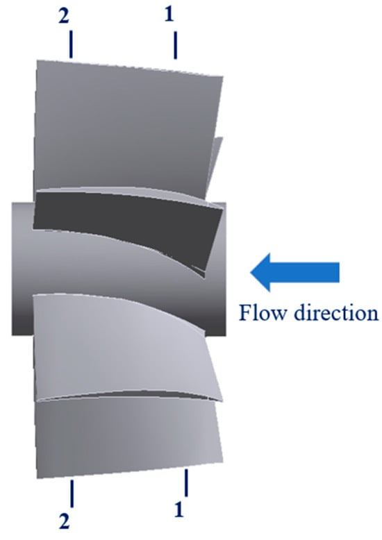 Nowadays, large-scale vertical axial flow pump devices play a very important role in the national economy, and they are widely used in various pump station projects [,]. However, the safe and stable operation of pumping stations has also attracted the attention of many experts and scholars. The structure of large axial flow pump units is complex, and changes in the structural characteristics of the pump device can greatly affect the reliability of pump station operation and even lead to major safety accidents in severe cases. Especially for a vertical shaft tubular pump station, where the unit is located in the flow channel, the water thrust and pressure during the operation of the pump device will undergo periodic fluctuations with the operating cycle. Therefore, during the operation of the pump station, cracks are highly likely to appear on the blades and affect the safe and stable operation of the pump station. In order to ensure the safe and stable operation of the pump station, it is required that the impeller and its supporting flow passage components, as the core components of the pump station, can maintain the strain within the normal range under the action of hydraulic thrust and pressure.