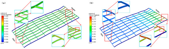 Fluid velocity distribution cloud map. (a) Model V1–3, (b) model V2–3.