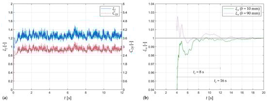 Finally, it is important to clarify that the parameters obtained from the numerical calculations presented in the following sections, such as ξ and CD, represent time–mean values. For values that fluctuate over time, additional subscripts are added to denote them, such as ξf and CDf. In addition, Equation (13) was used to calculate ξ unless otherwise noted.
