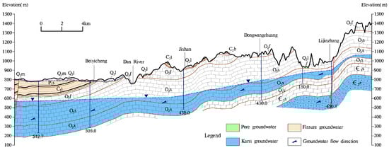 - Wang, Z.X.; Li, X.Q.; Hou, X.W.; Zhang, C.C.; Gui, C.L.; Zuo, X.F. Distribution Characteristics and Subsystem Identification of Karst Groundwater in Sangu Spring Basin. Earth Environ. 2020, 48, 228–239, (In Chinese with English abstract). [Google Scholar]