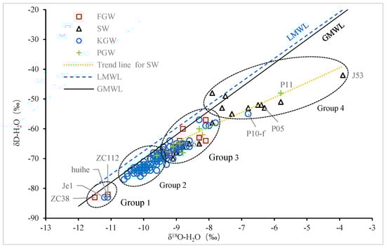 5.1. Groundwater Origins Indicated by δD-H2O and δ18O-H2O