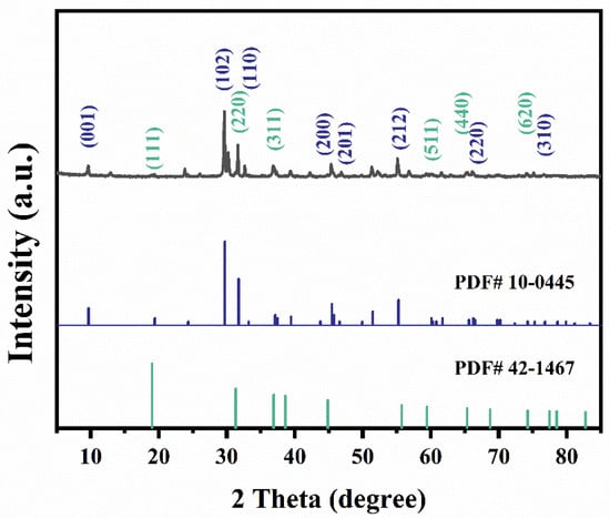 Different ratios of Co3O4@BiOI samples were prepared by a hydrothermal method. The appropriate mass ratios of Bi(NO3)3∙5H2O and Co3O4 were dissolved in 30 mL absolute ethanol and stirred at 300 rpm for 30 min to obtain solution A. KI (0.4980 g) was dissolved into 30 mL deionized water to obtain solution B. Solution B was slowly added into stirring solution A. The mixed solution was ultrasonicated for 30 min, then the mixed solution was transferred into a stainless 100 mL Teflon-lined autoclave, sealed, and kept at 180 °C for 24 h. The as-prepared samples were washed with deionized water and absolute ethanol several times and then dried at 80 °C in an oven for 24 h.