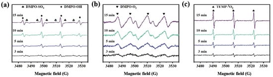 The detection results of (a) SO4•−, •OH, (b) •O2−, and (c) 1O2 by EPR technology.