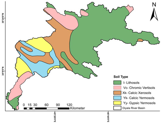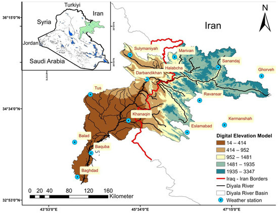 The hydrographical system of the Diyala River Basin, which is shown on the map.
