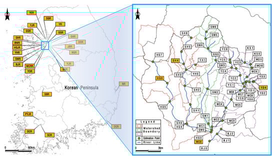 - Korea Water Resources Association (KWRA). River Design Guideline and Commentary; KWRA: Daejeon, Republic of Korea, 2019. (In Korean) [Google Scholar]