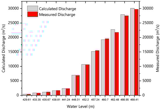 Comparison of measured and calculated discharge for the model at downstream of the dam.