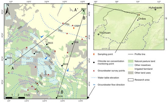 Building on this context, we focus on the Ordos Plateau’s unique meteorological and hydrological characteristics to explore the source and evolution of chloride ions. Dalat Banner, located in the northern part of Ordos City, was selected as a representative study area. Utilizing long-term groundwater monitoring wells and integrating the local hydrogeological structure and hydrodynamic field, we aim to identify the sources of chloride ions in groundwater. Additionally, we seek to determine the rainfall intensity threshold that influences chloride concentrations. This study also examines the spatial and temporal characteristics of the atmospheric precipitation and chloride distribution based on a clear understanding of the local chloride background levels. By first establishing the background levels of chloride ions in the region, we can explore the spatiotemporal evolution of the atmospheric rainfall and chloride distribution. This allows us to identify the sources of chloride ions in the regional groundwater and to determine the thresholds of rainfall intensity that impact chloride concentrations. These findings will provide essential support for the control and management of the groundwater environment in the Ordos area.