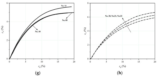 where e0 is the initial void ratio, Gs is the specific gravity, γw is the unit weight of water, γi is the initial bulk unit weight, wi is the initial water content, wf is the final water content, and εv is the volumetric strain during the triaxial tests.