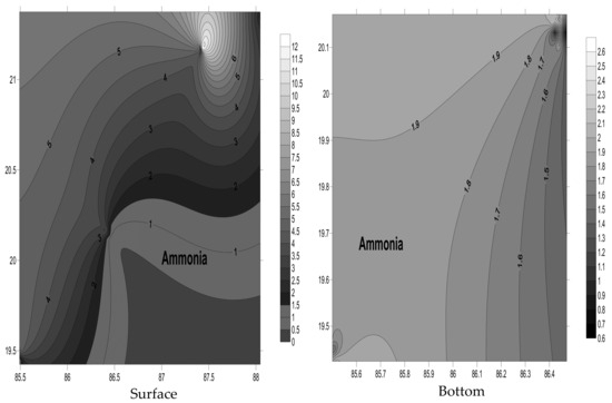 Contours showing variation in ammonia in µmol/L unit by SURFER Analysis method.