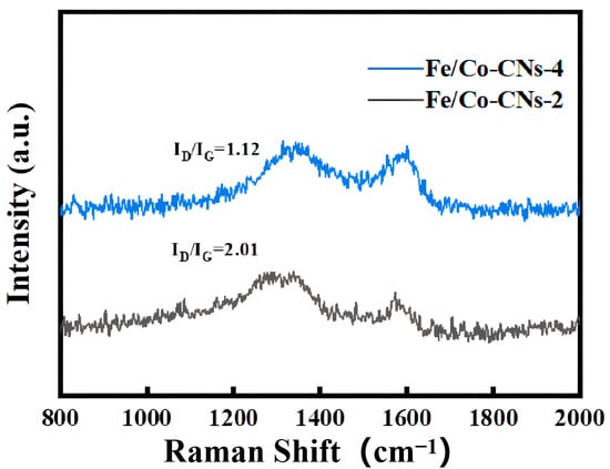 Raman spectra of Fe/Co-CNs-2 and Fe/Co-CNs-4.