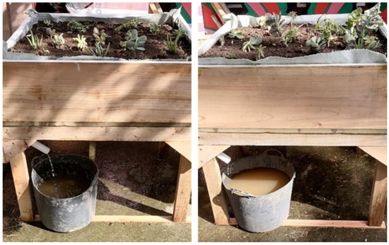 Drainage of the pumice prototype (left) and the expanded clay prototype (right) during the second monitoring session.