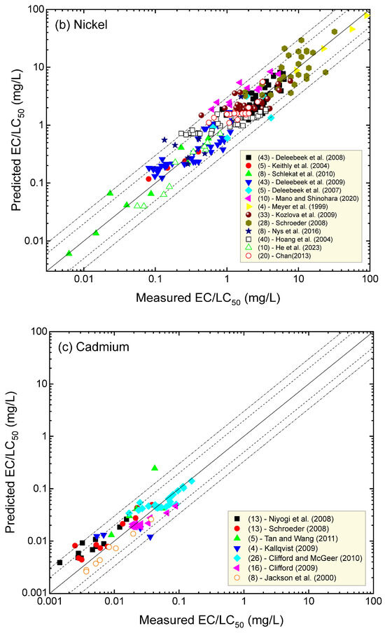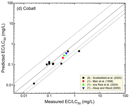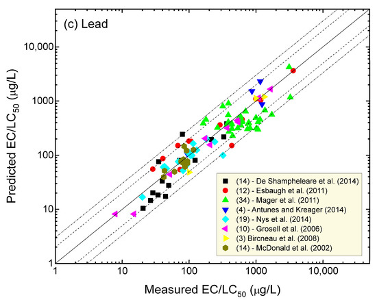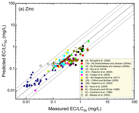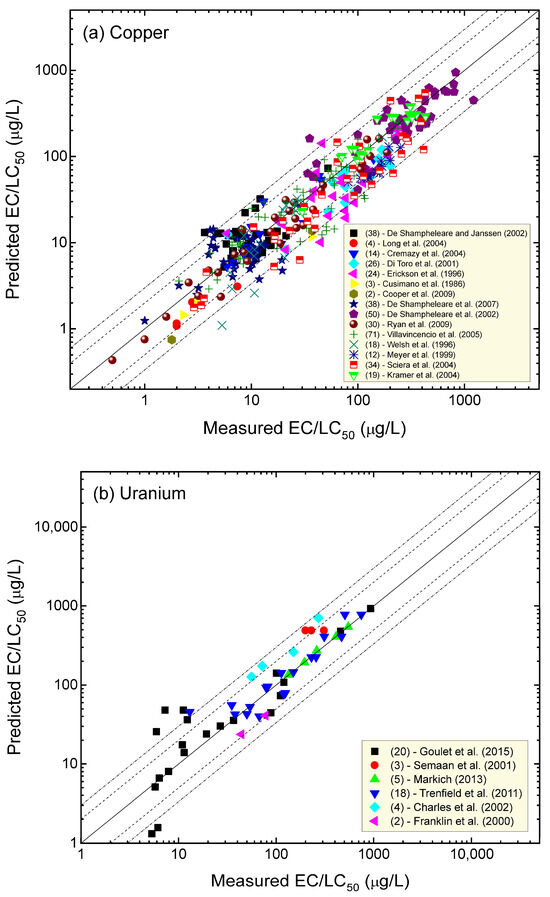 - Meyer, J.S.; Traudt, E.M.; Ranville, J.F. Is the factor-of-2-rule broadly applicable for evaluating the prediction accuracy of metal-toxicity models? Bull. Environ. Contam. Toxicol. 2018, 100, 64–68. [Google Scholar] [CrossRef] [PubMed]