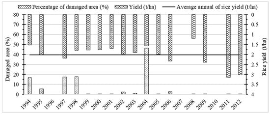 Damaged area and rice yield estimates in Kompong Speu province (reproduced with permission from Chhinh and Millington [19]).