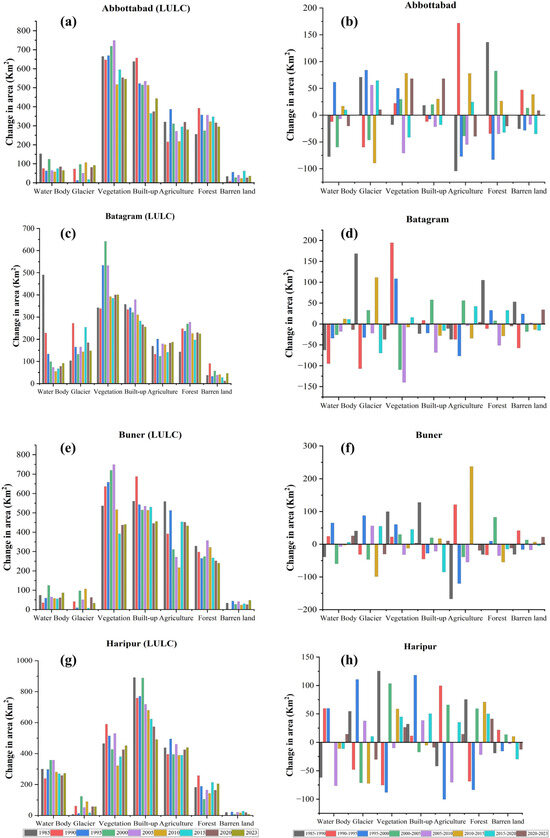 3.2. Dynamics of Land Use Land Cover Across Districts