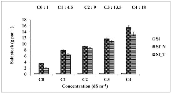 Variation of salt stocks according to treatments. (Si: Initial stock, Sf_N: Final untreated stock, Sf_T: Final treated stock).