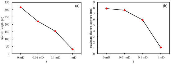 (a) The total length and (b) maximum aperture of stimulated fractures under different rock permeabilities.
