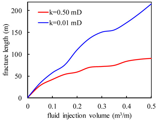 The variation in fracture length with fluid injection volume ().