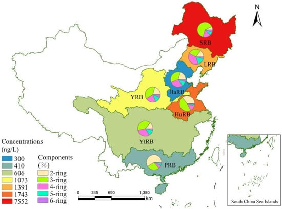 - Yu, H.; Liu, Y.; Han, C.; Fang, H.; Weng, J.; Shu, X.; Ma, L. Polycyclic aromatic hydrocarbons in surface waters from the seven main river basins of China: Spatial distribution, source apportionment, and potential risk assessment. Sci. Total Environ. 2021, 752, 141764. [Google Scholar] [CrossRef] [PubMed]