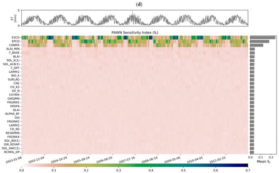 To evaluate the effectiveness of Py-SWAT-U-NSGA-III, three representative case studies were implemented. In addition, a time-varying sensitivity analysis (TVSA) of daily-scale streamflow and ET was performed using the PAWN method, with a total of 10,000 simulations.