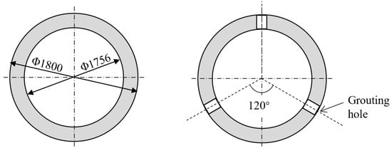 In this project, Q235 steel pipes are used for the pipe jacking. Each pipe segment is 9 m long, with an outer diameter of 1.8 m and a wall thickness of 22 mm (Figure 3). The segments are constructed by welding three 3-m-long steel pipes together, with heat-affected zones reserved at both ends of each segment.