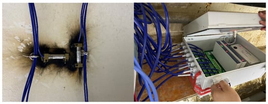 Each monitoring section was equipped with seven measurement points, positioned on the inner wall of the pipe segment at the lower left side, left side, upper left side, top side, upper right side, right side, and lower right side, labeled clockwise from 1 to 7. Due to the long-distance jacking, the seals in the intermediate sections were partially damaged, causing significant seepage of fissure water to the bottom of the pipes. For welding safety reasons, no strain gauges were installed at the bottom of the pipe sections. At each measurement point, one circumferential strain gauge and one axial strain gauge were installed vertically, distinguished by H and Z, respectively, as illustrated in Figure 6.