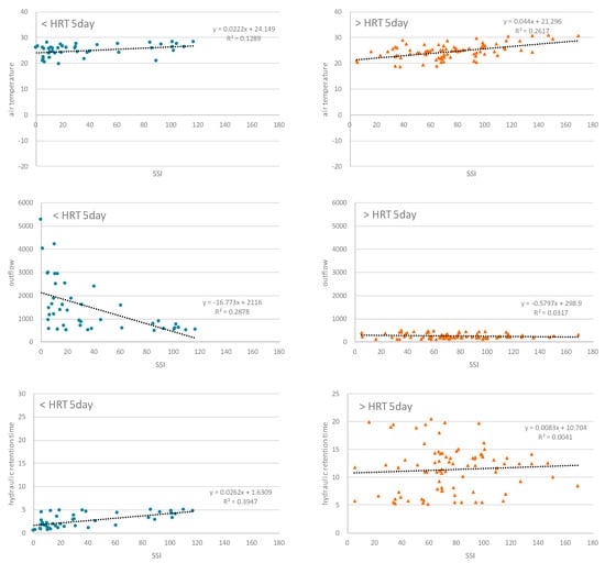 Relationships between Schmidt’s stability index (SSI) and air temperature, outflow and Hydraulic retention time (HRT) during summer period.