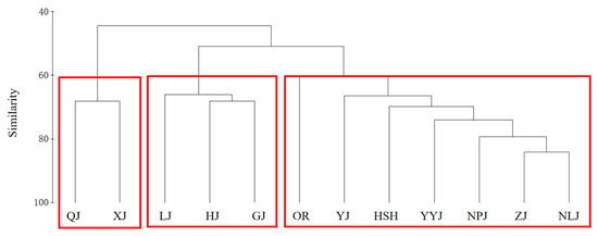 The Bray–Curtis similarity measure was introduced to analyze the compositional similarity of non-native fishes in 12 river systems. Based on the sampling results, the proportions of each non-native fishes in the total catch of non-native fish were calculated, and a species-sample point matrix was generated [18]. After square root transformation, the similarity indices of the different streams were analyzed by clustering using Primer 5 version 5.2.8 [27].