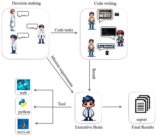 - Hong, S.; Zheng, X.; Chen, J.; Liu, Y.; Wang, Z.; Xu, Y.; Li, J.; Zhang, H.; Zhou, F. MetaGPT: Meta Programming for Multi-Agent Collaborative Framework. arXiv 2023. [Google Scholar] [CrossRef]