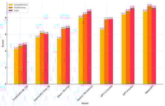 Evaluating the performance of trained LLMs is extremely important. For WaterGPT, we focused not only on the model’s capabilities after infusing knowledge from the water resources domain but also on the performance of the specialized large model in general domains. Therefore, our evaluation datasets are divided into domain-specific evaluation datasets and general domain evaluation datasets.
