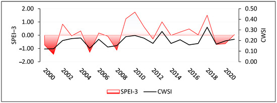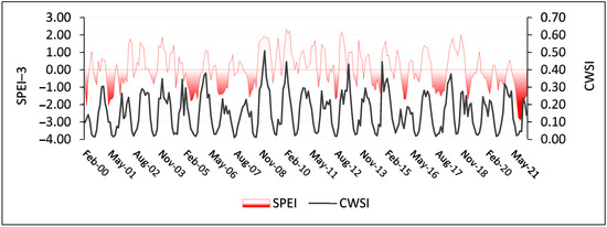 Graph of monthly SPEI (3 months) and CWSI.