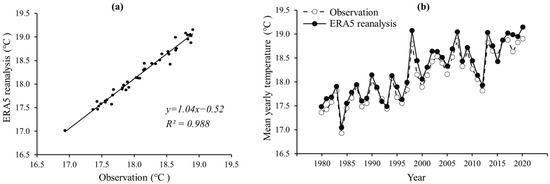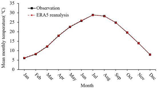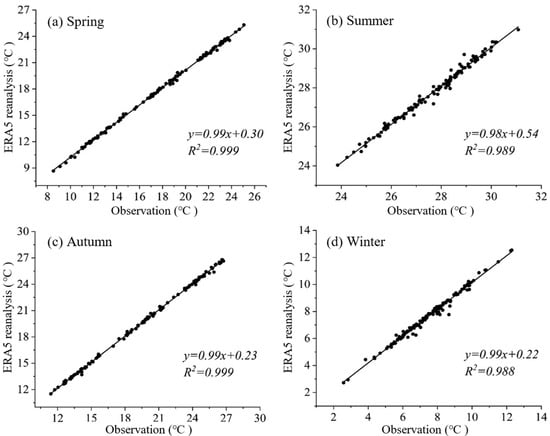 3.1. Validation of ERA5 Temperature