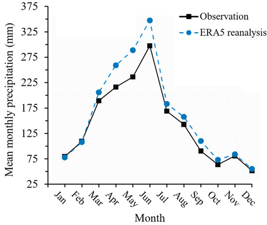 - Li, X.; Qin, X.; Yang, J.; Zhang, Y. Evaluation of ERA5, ERA-Interim, JRA55 and MERRA2 Reanalysis Precipitation Datasets over the Poyang Lake Basin in China. Int. J. Climatol. 2022, 42, 10435–10450. [Google Scholar] [CrossRef]