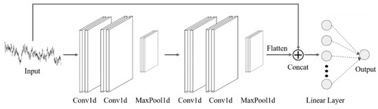 Figure 4 shows the CNN model structure used in this study, which consists of two sets of two 1D Convolutional Layers (Conv1d) along with one 1D MaxPool layer (MaxPool1d) and one linear layer. The employed activation function is a rectified linear unit (ReLU). The hyperparameter settings of the model are shown in Table 3, and the details concerning each neural layer in the model are provided in Table 4.