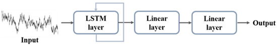 The LSTM model used in this study is shown in Figure 6. Its structure is simpler than that of the CNN model, consisting of a single LSTM layer and two linear layers. The hyperparameter settings of the model are listed in Table 5, and Table 6 provides the information concerning each neural layer.