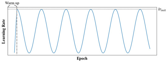 This study employed the weighted adaptive moment estimation (AdamW) optimizer provided in PyTorch, along with a learning rate scheduler consisting of linear warmup and cosine annealing for training. The learning rate scheduler allowed the learning rate of the model to vary over time during the training process (Figure 10).