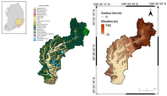 Land-use status and digital elevation model of the target watershed.