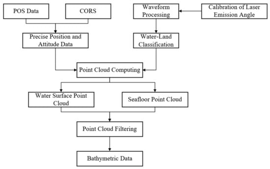 Figure 4. Processing flow of airborne LiDAR bathymetry data.