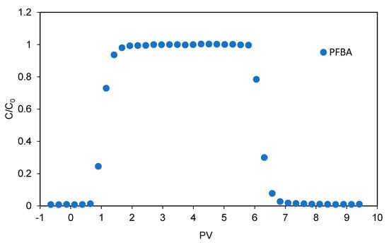 The PFBA concentration of collected effluent at the column outlet was measured using a UV-spectrophotometer at wavelength 260 nm. The SDBS concentration of collected effluent at the column outlet during column experiments was measured using a UV-spectrophotometer at wavelength 260 nm.
