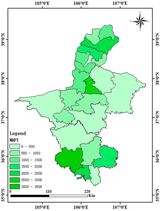 3.2. Spatial Variation Characteristics of NAPI